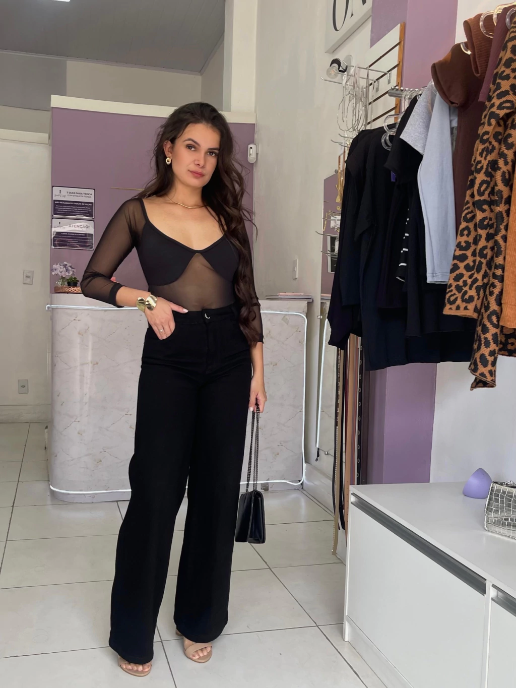 Medidas da Modelo: - Altura: 1,60cm - Busto: 86cm - Cintura: 70cm - Quadril: 101cm