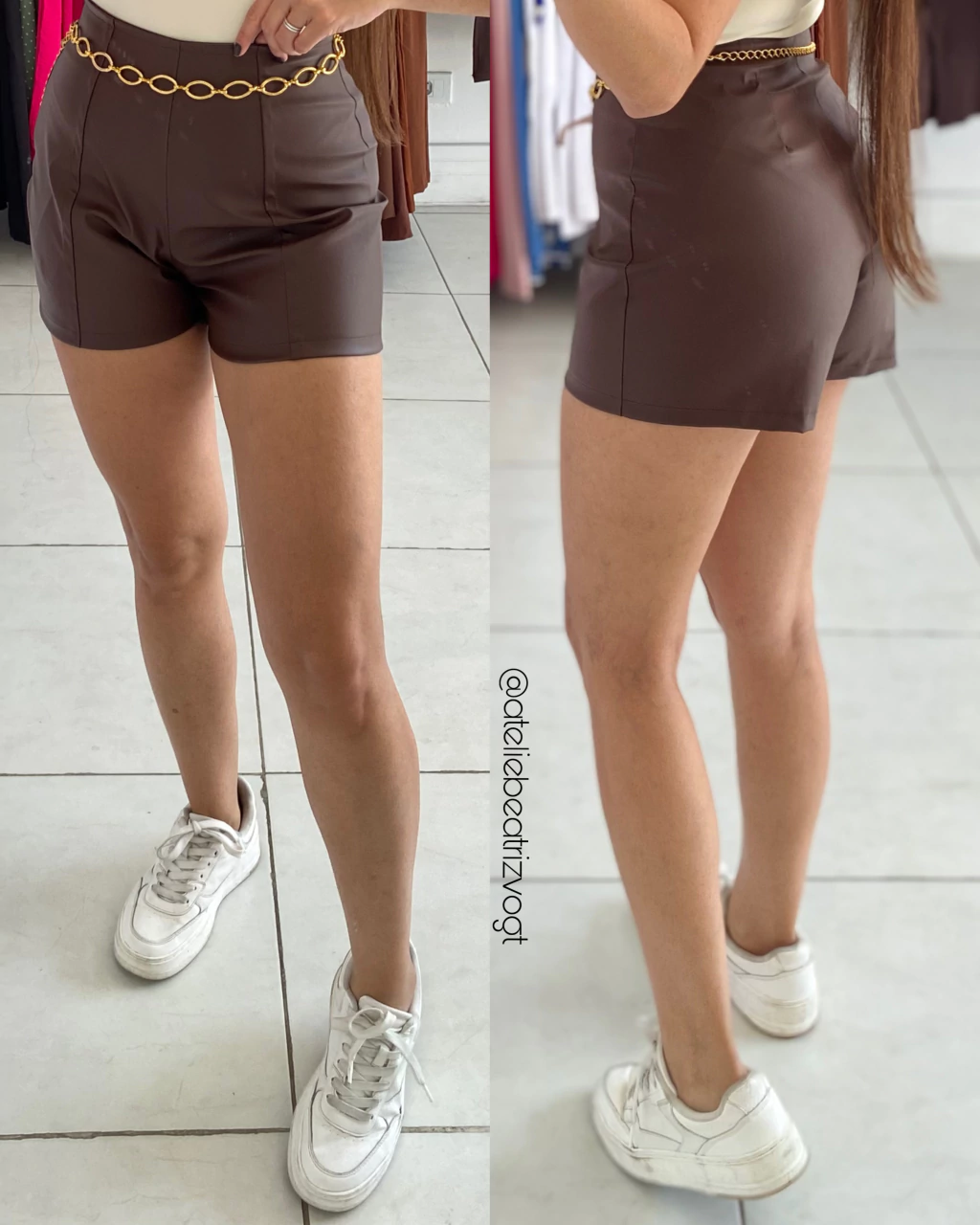 Medidas tamanho P: Cintura 60 cm, quadril 84 cm e comprimento 35 cm.