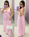 O vestido perfeito para acompanhar você em momentos especiais, seja em viagens, passeios ou eventos ao ar livre. Com modelagem fluida e listras verticais que alongam a silhueta, ele é a escolha ideal para unir conforto e estilo.